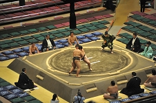 あっという間に取組開始だ。東からはモンゴル出身の龍葉山、既に20歳になっているが、朝青龍の龍に時津風部屋の祖・双葉山からきている葉山を合わせた四股名を持ち、 この場所番附に名を載せた。八角部屋の原に二本差されてもお構いなし、左上手右おっつけで持っていき完勝、そのまま勝ちっ放して序ノ口優勝を飾った。