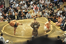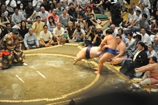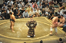 右差し狙いの藤ノ川と左前褌狙いの美ノ海、ともに果たして美ノ海が右から挟みつけながら出たところまでは直線的な相撲だったが、 美ノ海の左が外れたところから俄かに乱戦、美ノ海右四つに捕まえてドッと体を預けた。藤ノ川は右を差して左も入れたかったところで逆にガバッと差されてしまった。 というのも左で張って右を差しにいったから。
