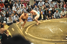 ![]() | ●友風(押し出し)獅司○ 友風額で当たって右で突きながら左を固めて立ったはずが、なぜか左も突きに変えてしまい、獅司が左手を出しながら右肩を下げて掬うように右を入れると、友風嫌がって右に下がりながら頭を引いて黒房に完敗。 |